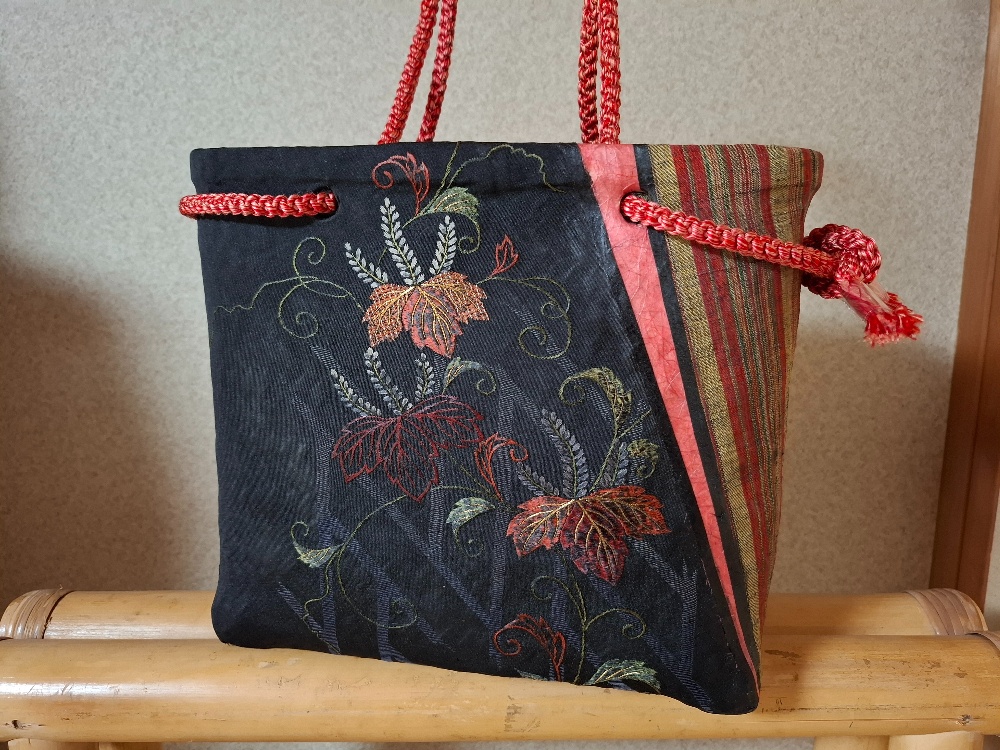 これは黒地に花の生地をメインに張ったのですが、反面に張るものが見つからなくて😓いろいろ合わせてみたのですが、力のバランスが取れませんでした😞