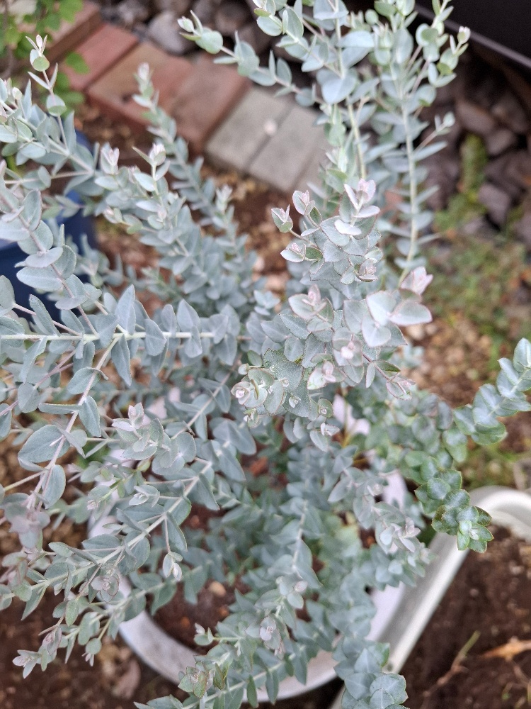 で、はい、お迎えしました😊2~3mになるということですが、鉢植えを薦められたので早速植え替えました👌今までユーカリが欲しいなんて思ったことなかったのに、不思議ですね😊大きくなぁれ🌿「コアラ🐨飼っちゃう?」と言ったら「ぬいぐるみで我慢してください」って😆