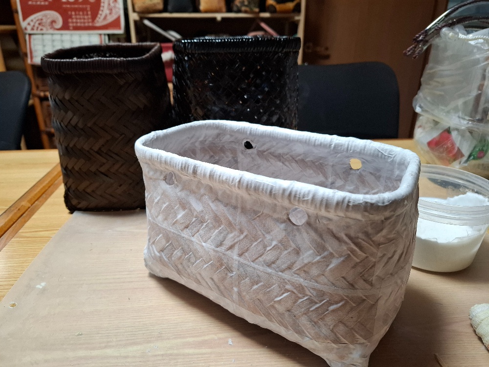 小物の柄つけもしなければいけないのですが、もう少し待ってもらいましょう。かごバッグの下張りが済んだら…できますように😁