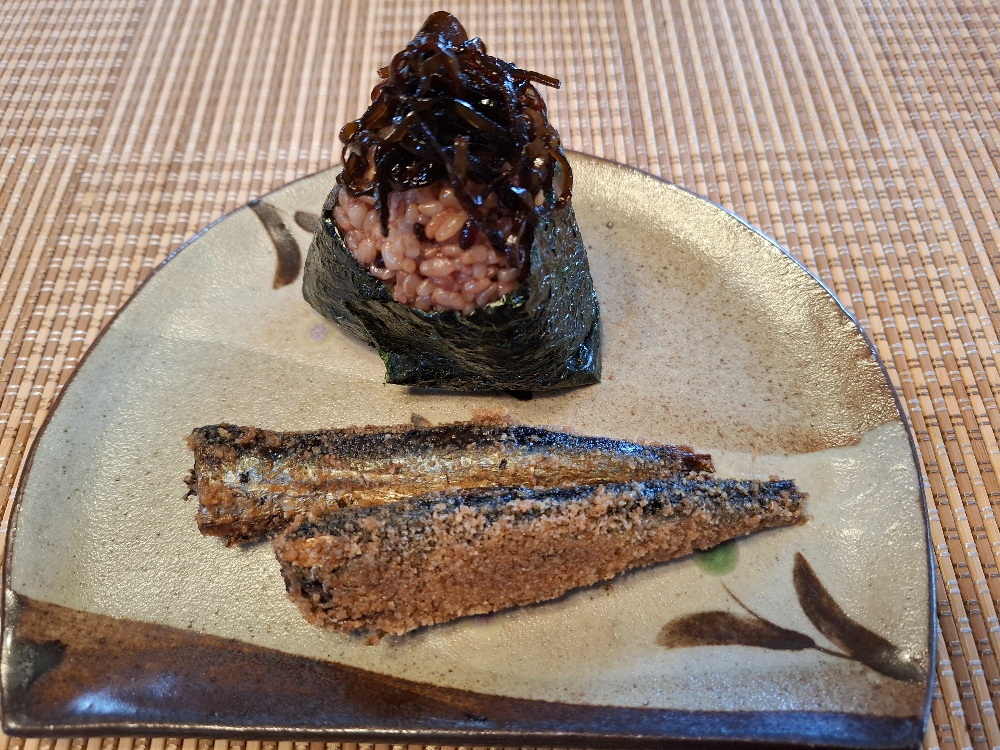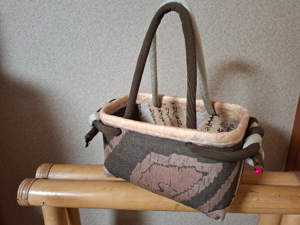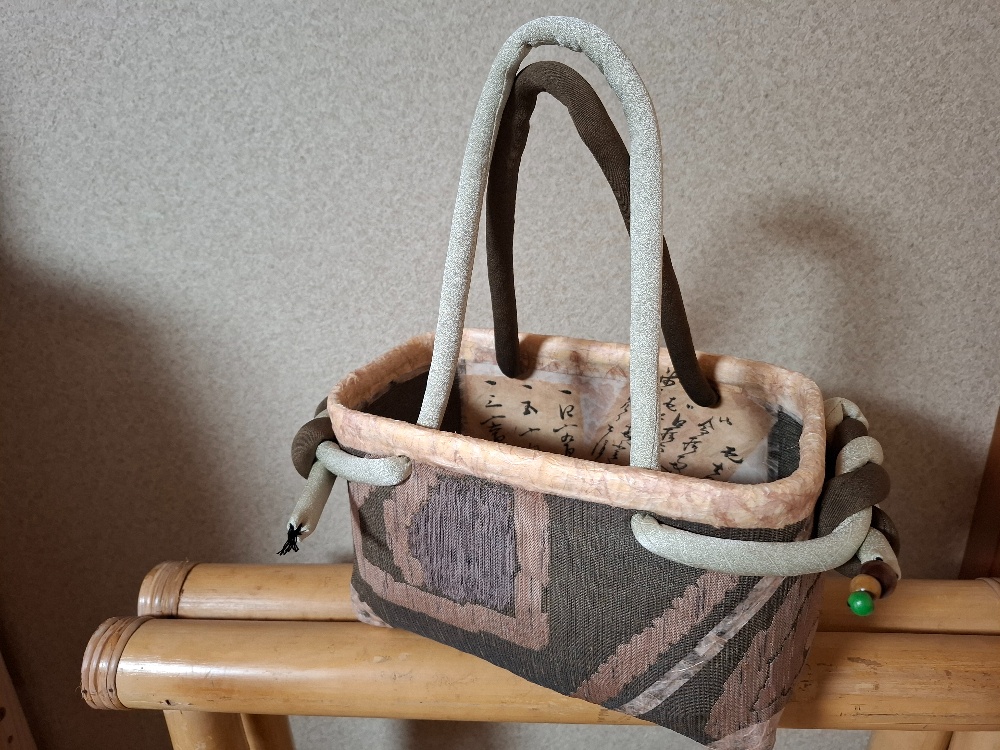 小さなかごバッグに帯を張りました。裏に糸が沢山ある帯でした。もっと取れるかと思ったのですが、かごバッグひとつ分しか取れなくて。本当にたったひとつのかごバッグです。余計な色は入れたくないなとおさえてみたせいでしょうか?ちょっと地味?落ち着いていると言うことでいいかしら?😊おにぎりアクション3日目🍙玄米と昆布の佃煮。金胡麻鰯を添えて。写真に撮るのを忘れた味噌汁もあって満足🈵️😃✨