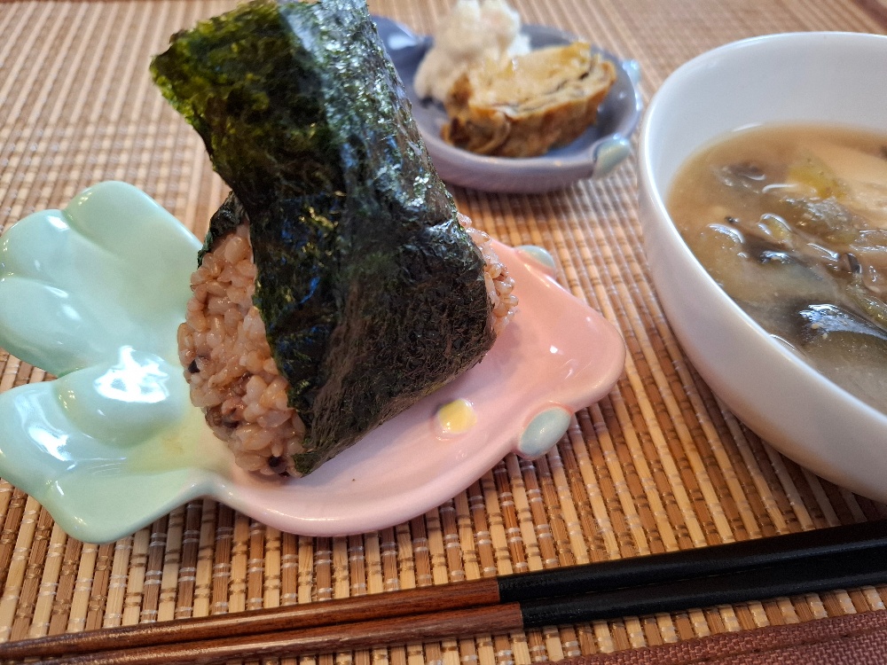 【ひろこの作品】般若面と反面は翁面です。般若面は鬼女ですね。怒ったような悲しいような鬼女。反対に翁は男性。穏やかなおじいさん。何だか…ねぇ。穏やかなおばあさんでもいいんだけどなぁ😊おにぎりアクション4日目🍙玄米の塩むすび🍙シンプルなのが美味しいです😋