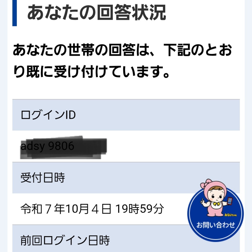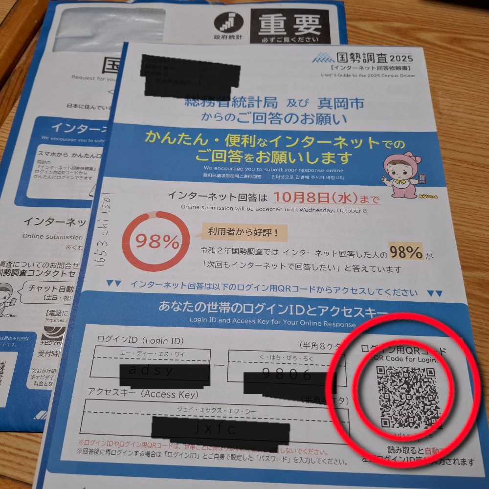 昨日の夕刻、国勢調査をよそおった詐欺メールが届きました。うちは終わってますよと思いながらも気になって、用事を済ませてから落ち着いて、配布されている案内のQRコードからログインしてパスワードを入力すると、ほらねやっぱり済んでいました。