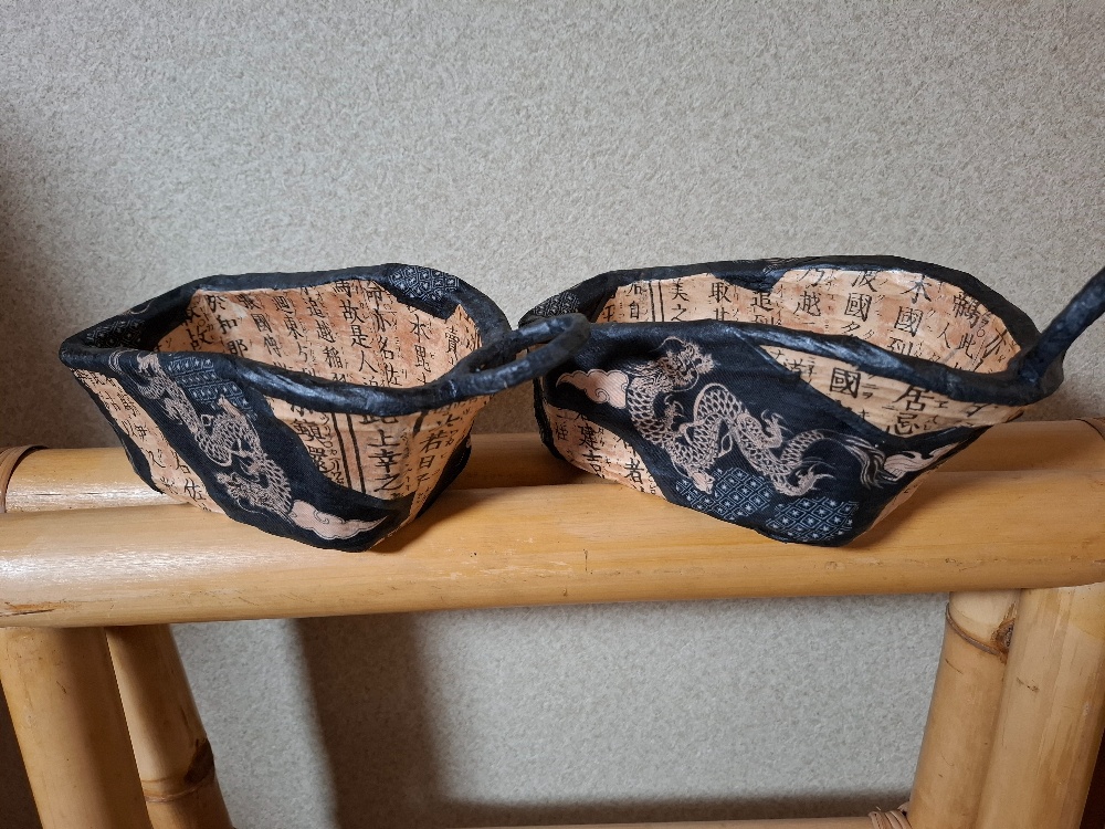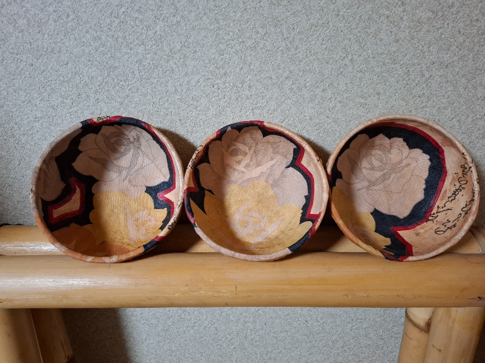 【ひろこの作品】一閑張りの小物。あっという間に10月も半ばになって、今週末は【百年工房作品展示秋祭り】です。ひょうたんランプのワークショップを用意して行きます。後はいつも通りの販売ですね。この小物も持って行く予定です😊未だ荷造りもできてなくて、明日間に合うのかちょっと心配です😅毎度のことだけど。おにぎりアクション10日目🍙キーマカレーでも🍙😊