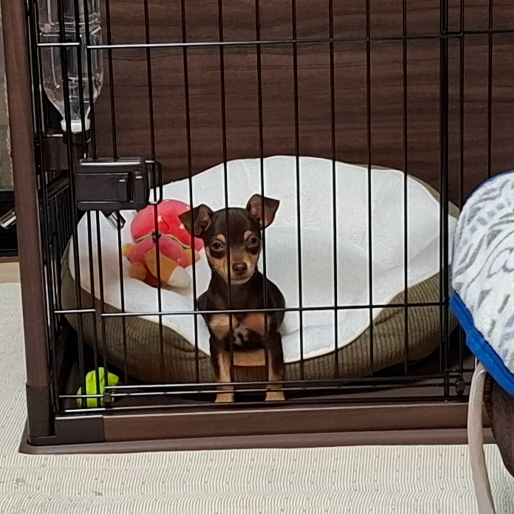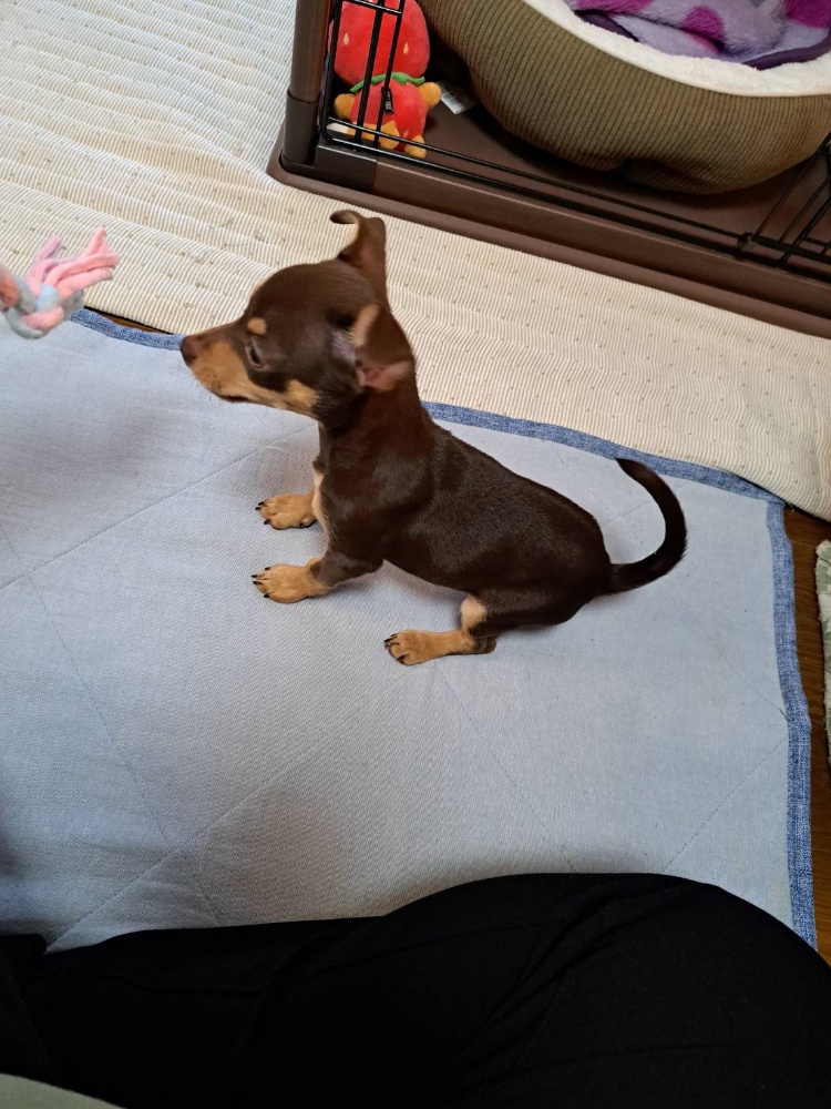 昨日子犬をお迎えしました🐶チワワとミニピンのmixでチワピンだそうです。生後3ヶ月のめちゃくちゃヤンチャな男の子です。名前はAzuki。時々登場すると思います😊この子も宜しくお願いします🙇⤵️