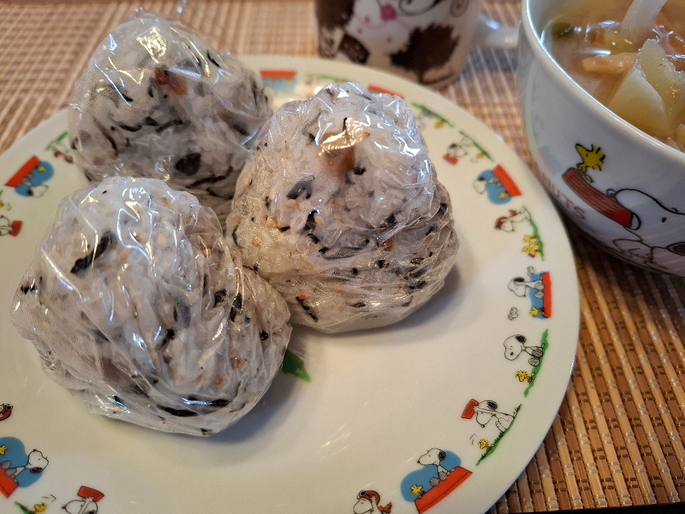 【ひろこの作品】数ヶ月前に初めて白い一閑張りを張った生地と同じものを入手できたので、今回は黒で...と思ったのですが、赤も入れてみました。人の好みは判りません。こんなのも気に入ってくださる方がいらっしゃるといいのですが😊おにぎりアクション18日目🍙梅ひじきふりかけを混ぜたご飯に白胡麻をたっぷり足しました🍙このふりかけ大好きなのですが、3つ🍙🍙🍙もできちゃいましたね😄食べ過ぎ注意です😉