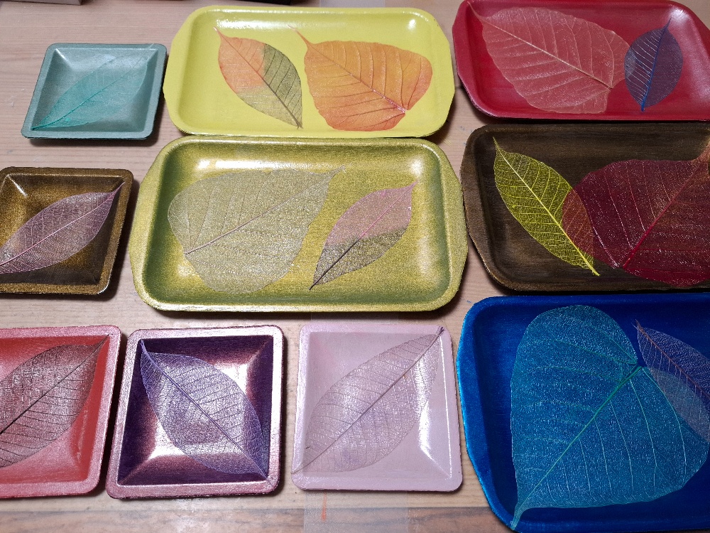 午前中は生徒さんの下張りを見ながら、私も小物を張っていました。娘が週末に頑張ってくれたボタニーペインティングのトレイは仕上げる時間が取れないので私が代行です✊️