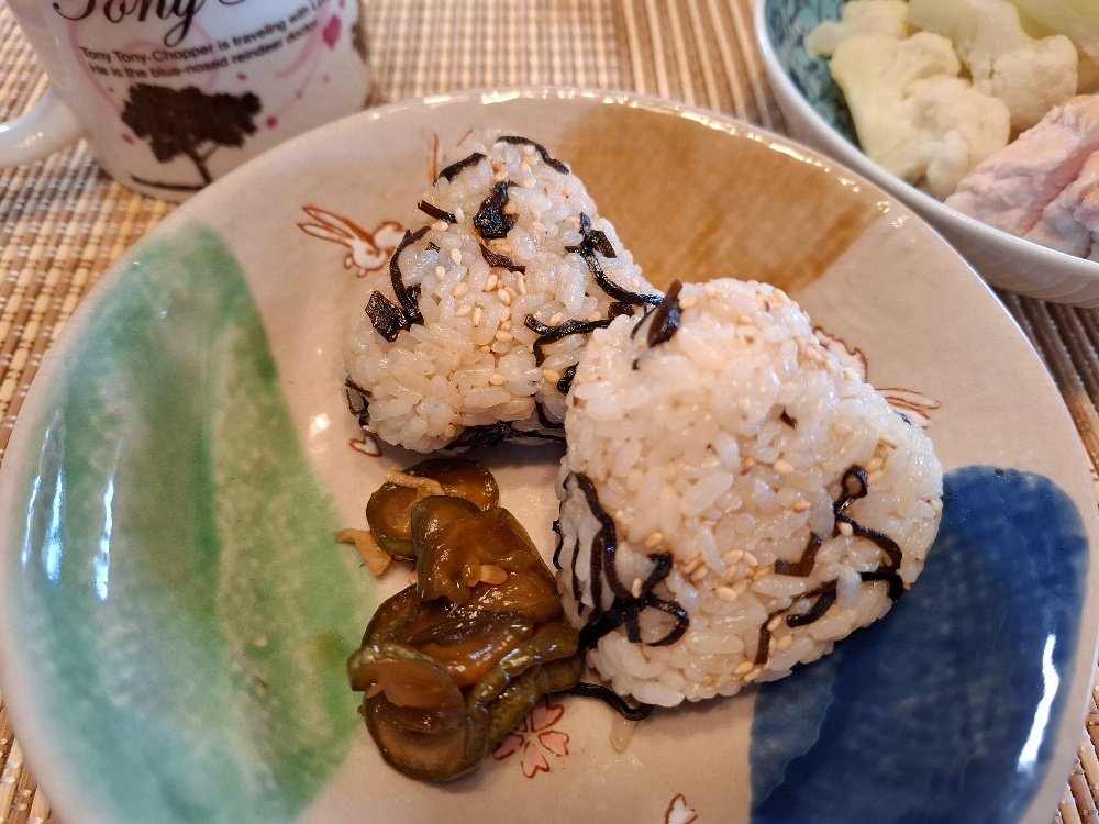 おにぎりアクション24日目🍙塩昆布と白胡麻を混ぜました🍙お昼にふたつも食べちゃったので、午後も頑張っています✊️😄