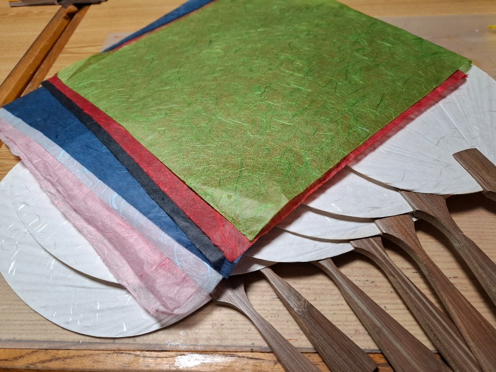 さて、うちわはここまで来ました。現在20枚の和紙張り終了。2枚余裕を持ってあと7枚。それが済んだら柄つけです。今週もできる時間を大切にして、前進ですね✊