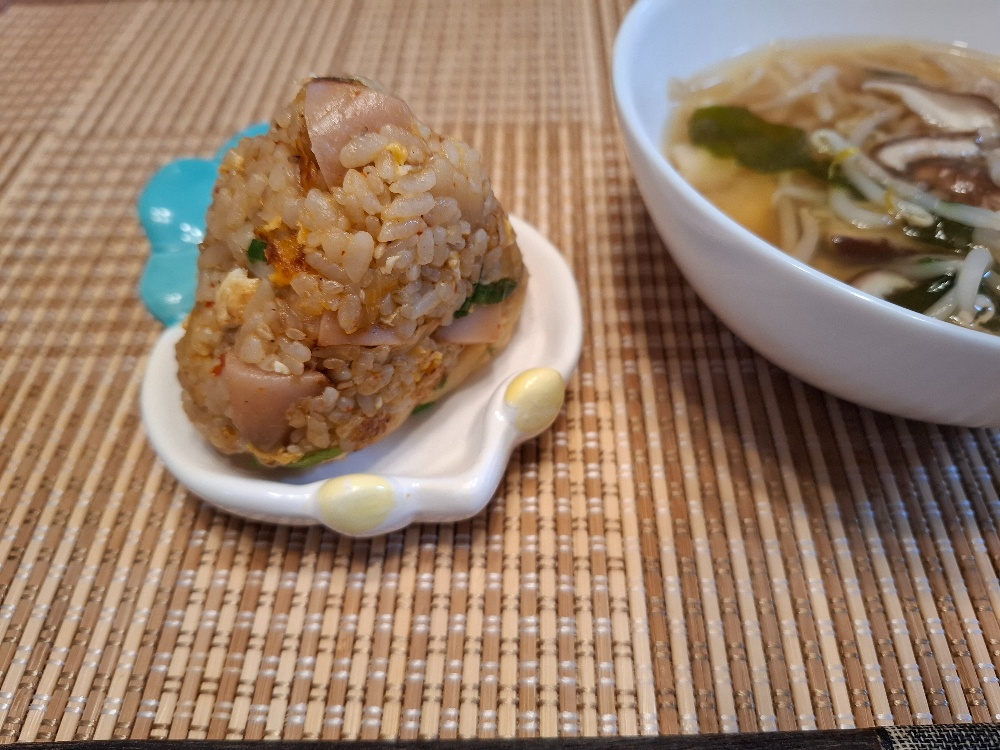 おにぎりアクション34日目🍙キムチ炒飯の🍙にあったかいお味噌汁。身体の中から美味しく温めましょう😋おにぎりアクション2025も明日で5週間。40日間なんてあっという間ですね💦