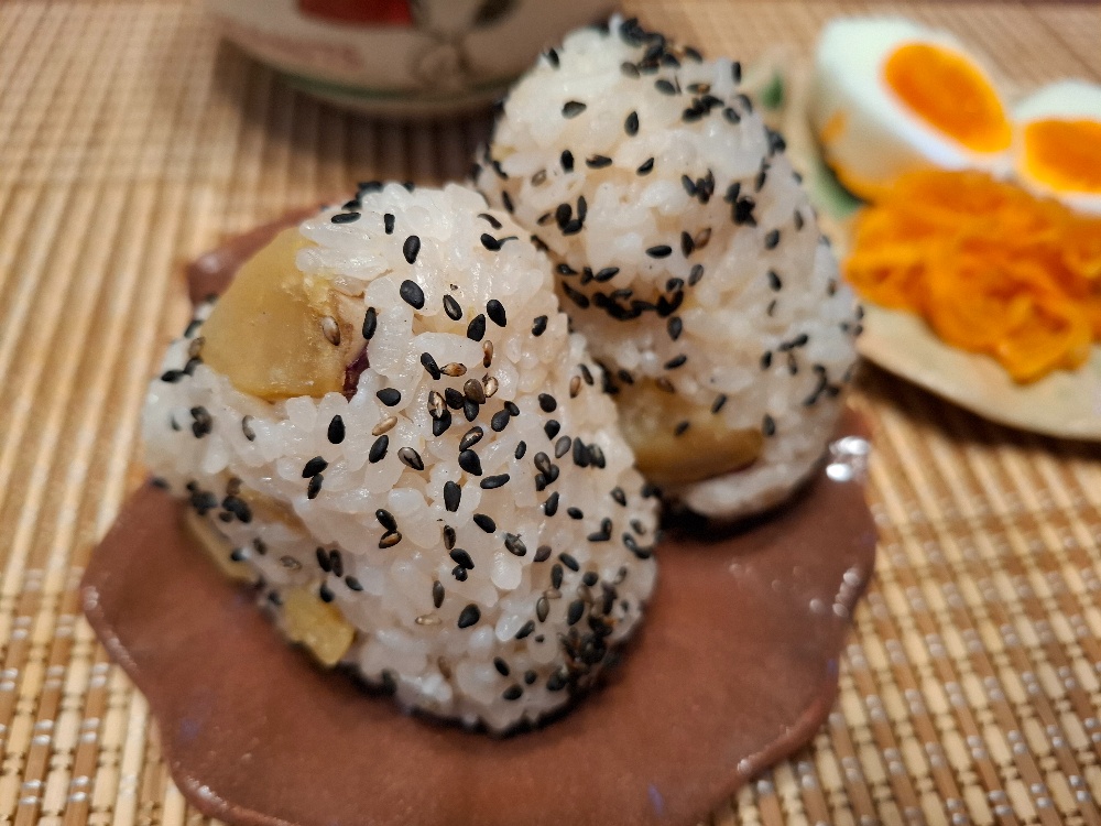 おにぎりアクションFOR JAPAN9日目🍙さつまいもご飯🍠の🍙です。昨日夕方になって、あれ?今年さつまいもご飯してないんじゃない?と気づいたので早速です。ホクホク甘くて美味しかったです😄