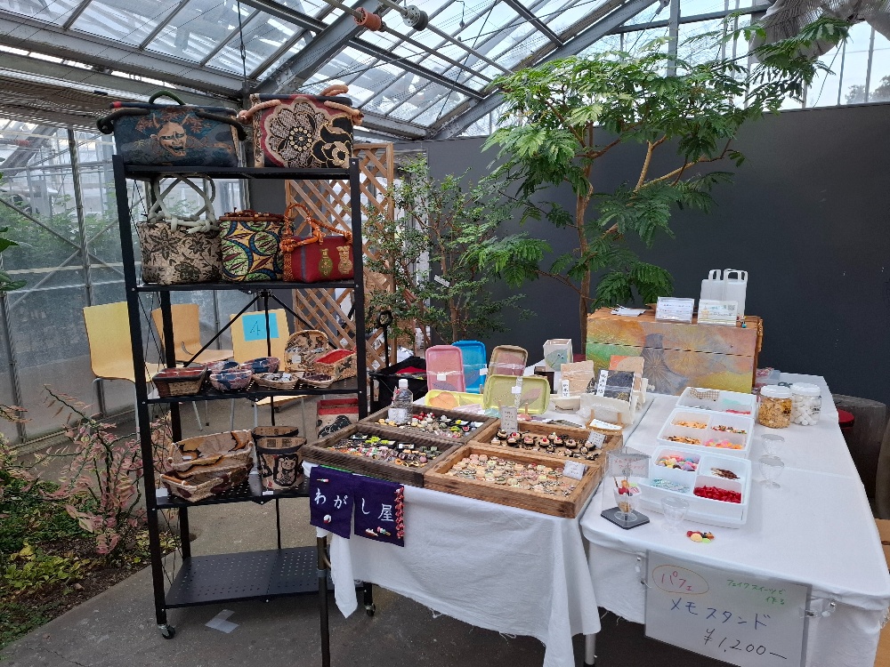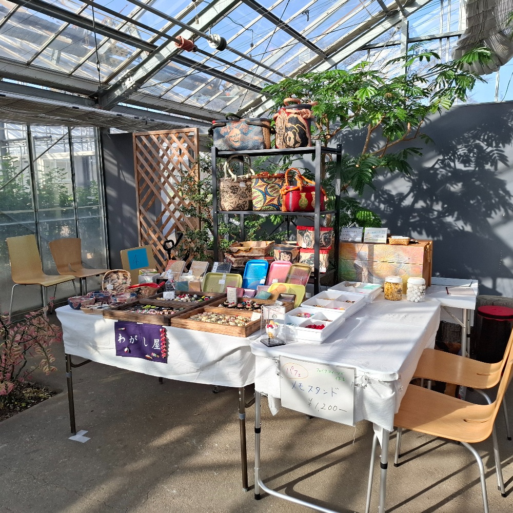 今日は【結いマルシェ】です。いばらきフラワーパークさんのアトリエローズファームでの出店です。屋内ですが16時になってスーッと冷えてきましたよ。日が暮れるとイルミネーションがきれいです。きっと…。寒くなるので温かくしてお出掛けください。今日のブースはレイアウトに苦心。先程までのレイアウトを変更してみました。一閑張りを手に取れなかったので😓やっぱり手にとって見たいですよね。