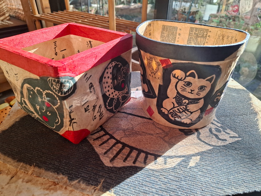 「こんちわ~😄どうも、暫く😄」確かに暫くです。毎年師走になると来てくれるお客様ですもの。「昨日来て旦那さんと用事は済んだんだけど…」と。ここ数年一閑張りの小物を買ってくださっていて「今日は奥さんいっか(居るか)と思ってよ😄」わざわざ出直してくださいました。