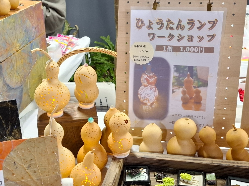 曇りの予報だったのですが、早くから雨☔寒いけど、先週よりは寒くないかも😊こんな天気の中足を運んでくださっているお客様、ありがたいですね💕今日はひょうたんランプのワークショップもご用意したのですが…😅気長にお待ちしましょうね😉