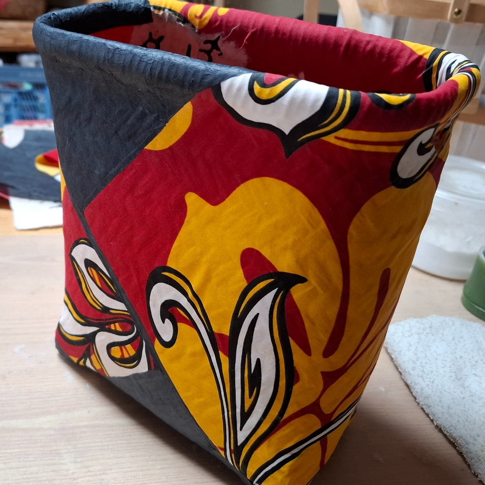 今日はかごバッグをひとつ張りました✊️凸凹の補整をした籠なので所々凸凹が見えますね。浮いているわけではないのですが😒そして、張っている途中から悩んでいます。持ち手はどんなのがいいでしょう?ショルダーバッグなんです。無地?柄物?色は?決められないんですよ😥
