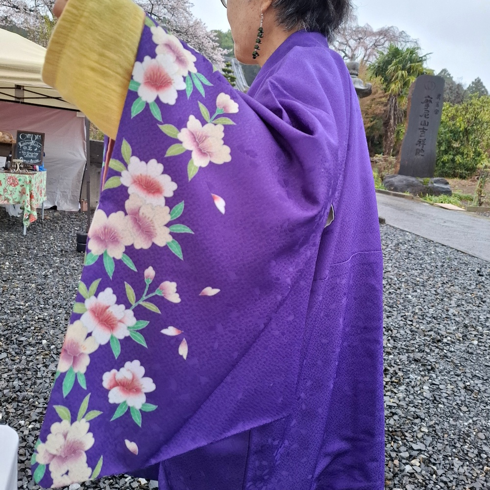 【吉祥院はなマルシェ】当日。残念ですが...雨☔。降って止んで降って強く降って止んで…寒いですが、風がないのがありがたいです。「桜雨」と言えば風情がありましょうか😊さてさて、先日の【桜フェスタ】でご縁をいただいた和服に手を加えて、今日の衣装をしつらえた私ですが、雨に負けて花の精にはなりきれませんでした😂
