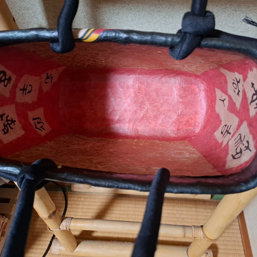 オーダー品はお客様に届けてからお披露目したいので、今日漸くお披露目です。外側は黒色を多めに。透け感のある和紙を使って軽くしました。内側は繊維の強い和紙を張って、むつめの穴の多さを補強できるようにしました。頑張りました😄✌️と言いたい作品になりました😊